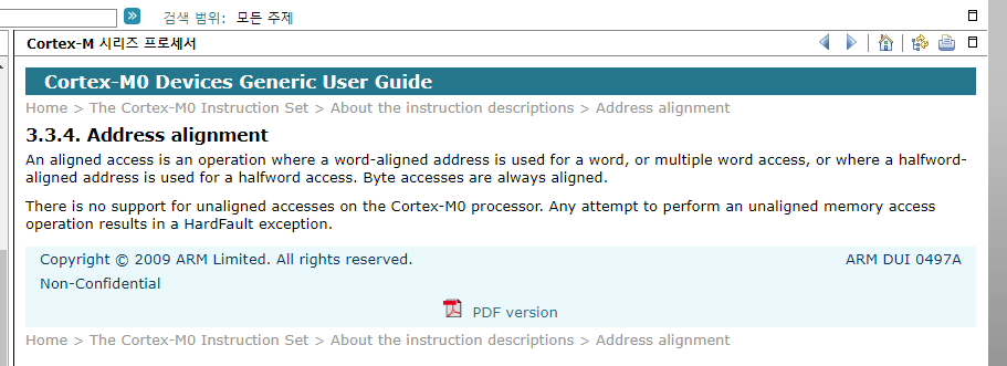 Cortex M0의 unaligned memory access 지원 불가